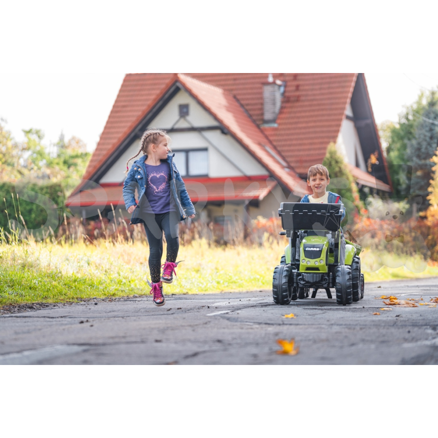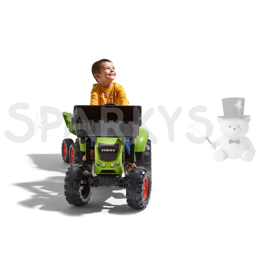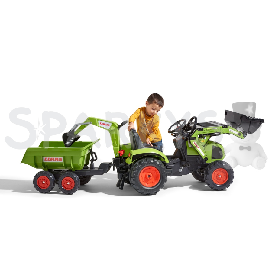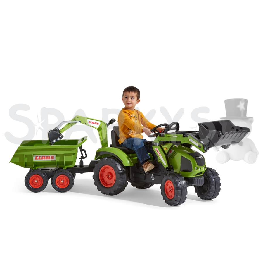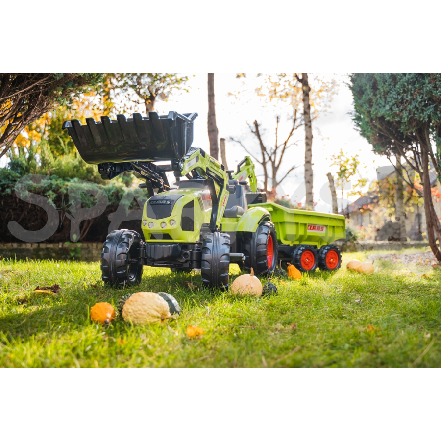 FALK Šlapací traktor 1010W Claas Axos s nakladačem, rýpadlem a přívěsem