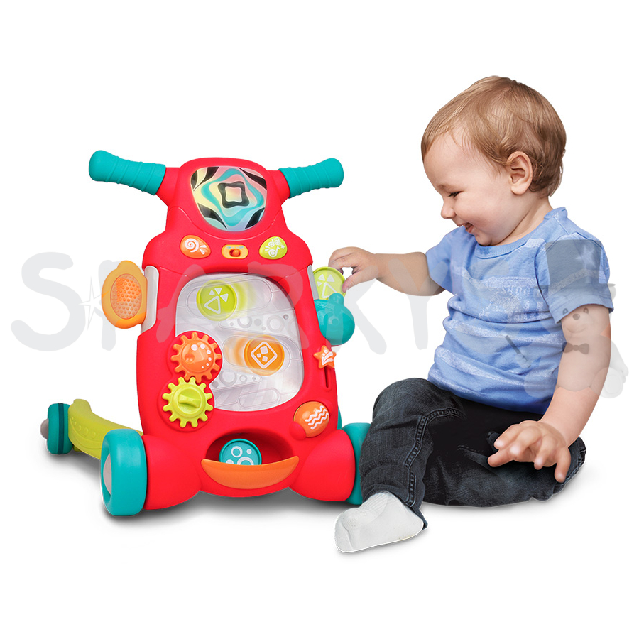Toto chodítko 2v1 od HAP-P-KID poskytuje zábavu ve dvou různých způsobech. Je vybaveno veselým potrákem, který pomáhá dětem při jejich prvních krůčcích a zároveň fascinujícím interaktivním panelem s pohyblivými ozubenými kolečky, chrastítkem a klapající hvězdičkou. Světelné a zvukové efekty zajišťují, že si děti užijí hraní naplno!