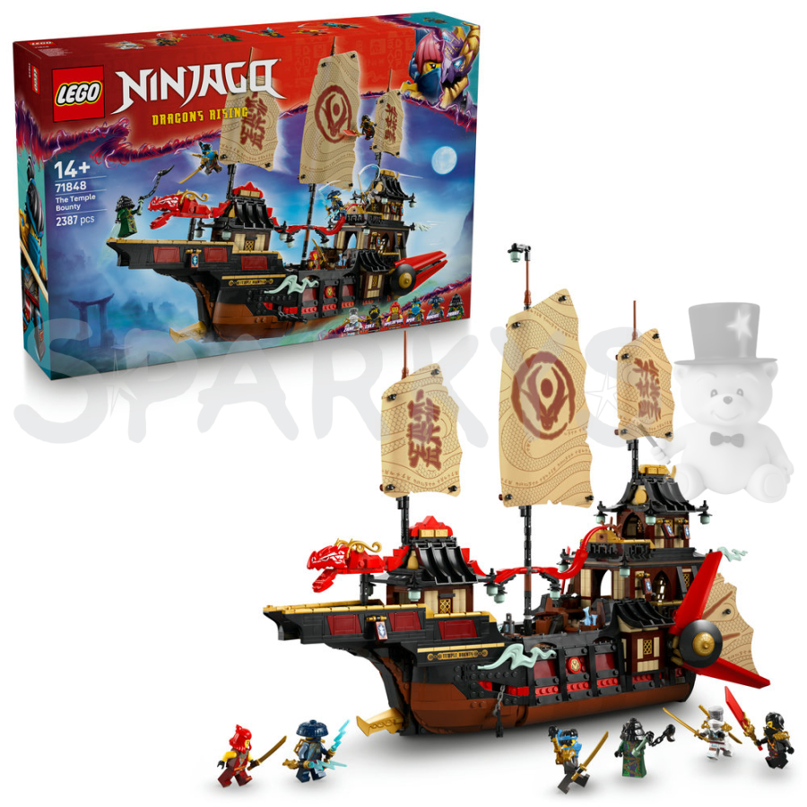 Objevte kouzlo této nádherné stavebnice v podobě plně vybavené lodi Chrámová Odměna, která je připravena na další dobrodružství ve světě NINJAGO!