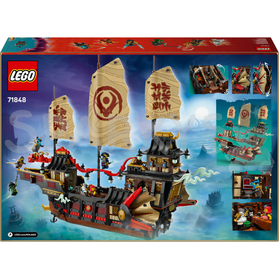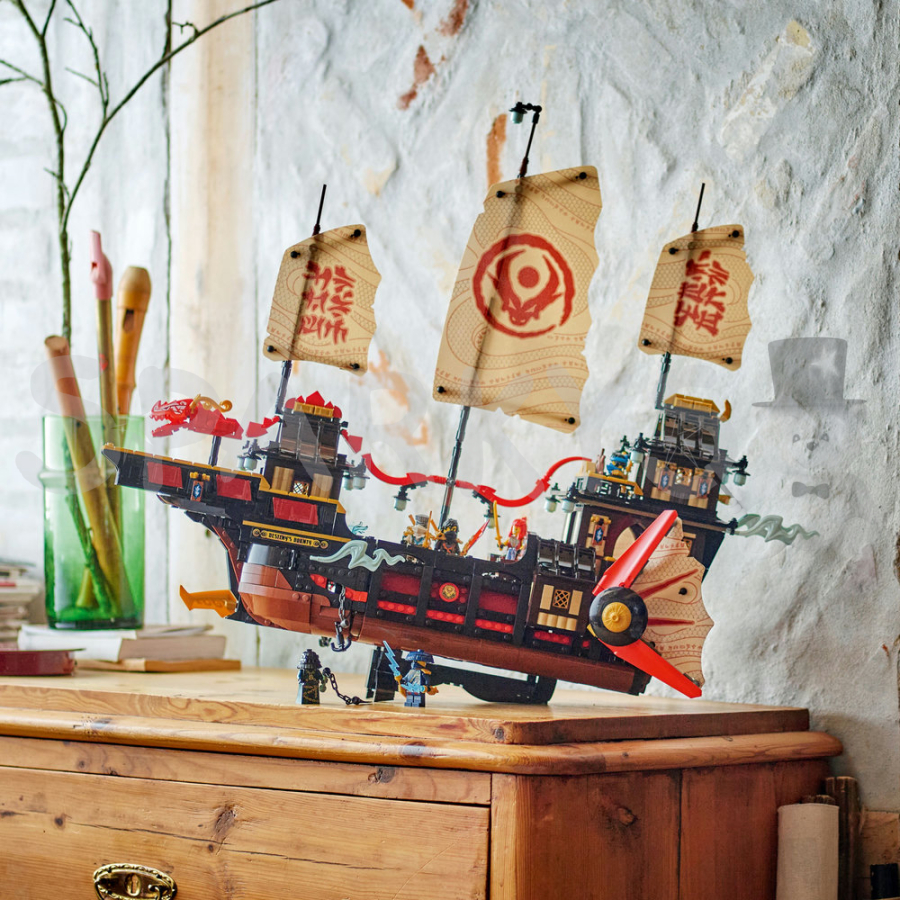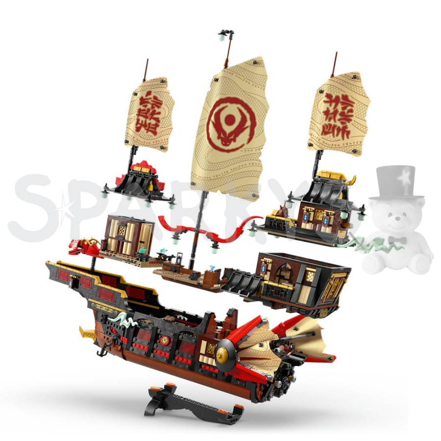 Tento velký model lodi se může pyšnit pohyblivými plachtami, odnímatelnými střechami a podlahami, které umožňují přístup do interiéru, včetně sushi baru a tajného počítače. Děti si mohou hrát na scénáře z oblíbeného televizního seriálu JINJAGO a využít různých interaktivních prvků k obohacení svého zážitku z hraní.