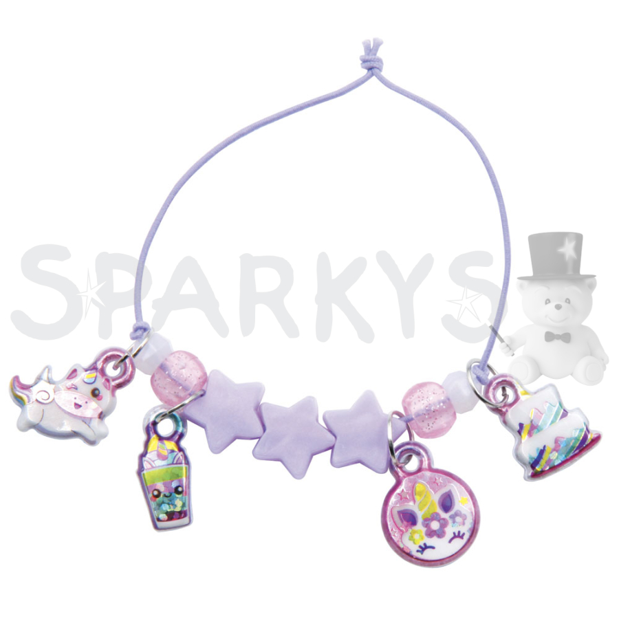 Set obsahuje barevné náramky a náhrdelníky, které si děti mohou snadno přizpůsobit pomocí různých přívěsků. Hraní s těmito šperky podporuje představivost a schopnost kombinovat barvy a tvary dle vlastního vkusu.